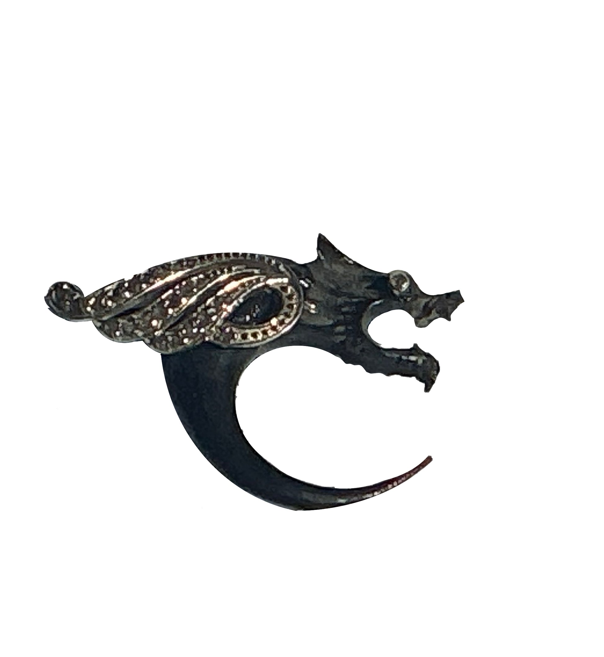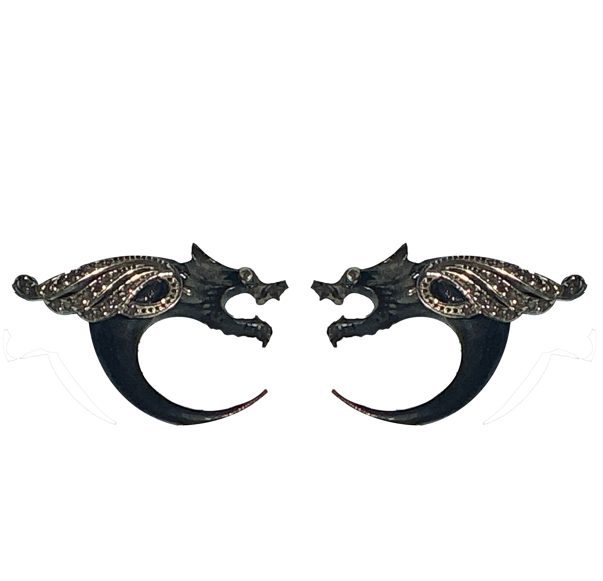 LE FLYING DRAGONS, diamond and silver wings inspired by a British antique broche now adorn Balinese horn carving… Or how to make an ear piercing very …bobo…