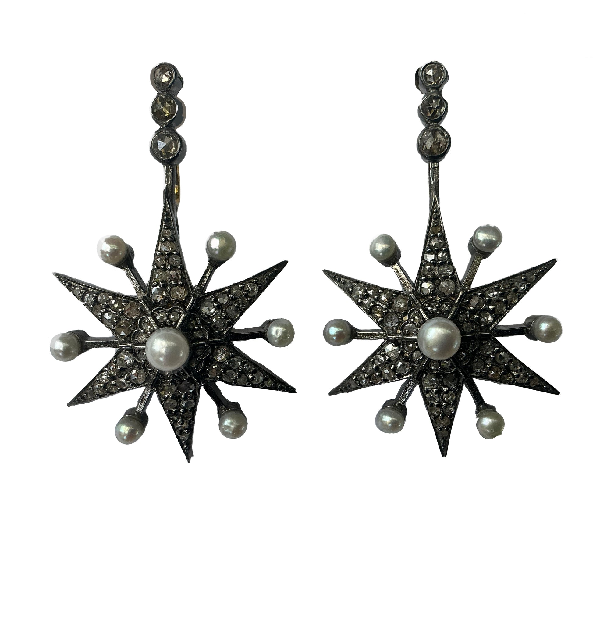 Brex’otIC collection: diamond, pearl and silver earrings inspired by a British…definitely Austrian too! antique broche.